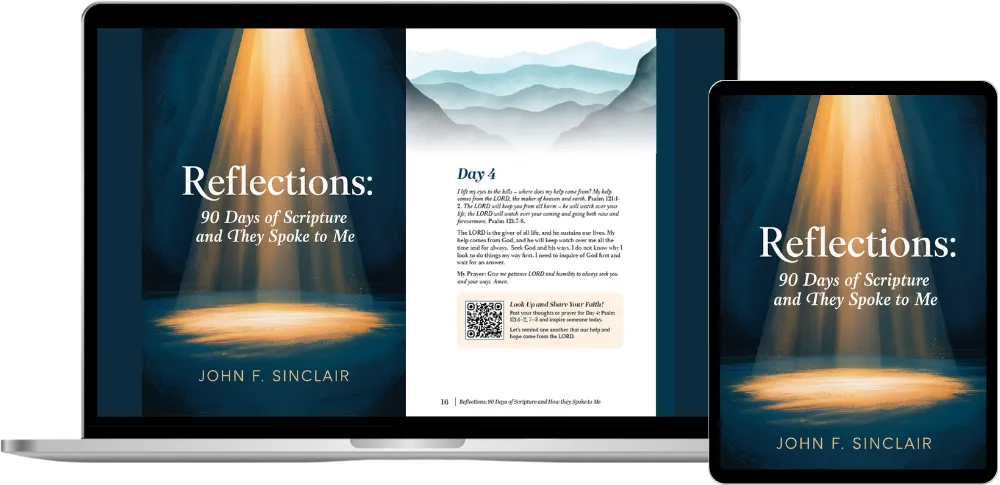 Reflections: 90 Days of Scripture and How They Spoke to Me is a guided prayer journal by John F. Sinclair designed to deepen your connection with God. For 90 days, you'll engage with carefully chosen Bible verses, read John's heartfelt reflections, and be prompted to write your own thoughts and prayers. Through this daily practice, you'll cultivate a stronger, more personal faith and witness how God's Word can transform your life. And you won't journey alone—join a free online community of fellow readers to share insights and encouragement along the way.